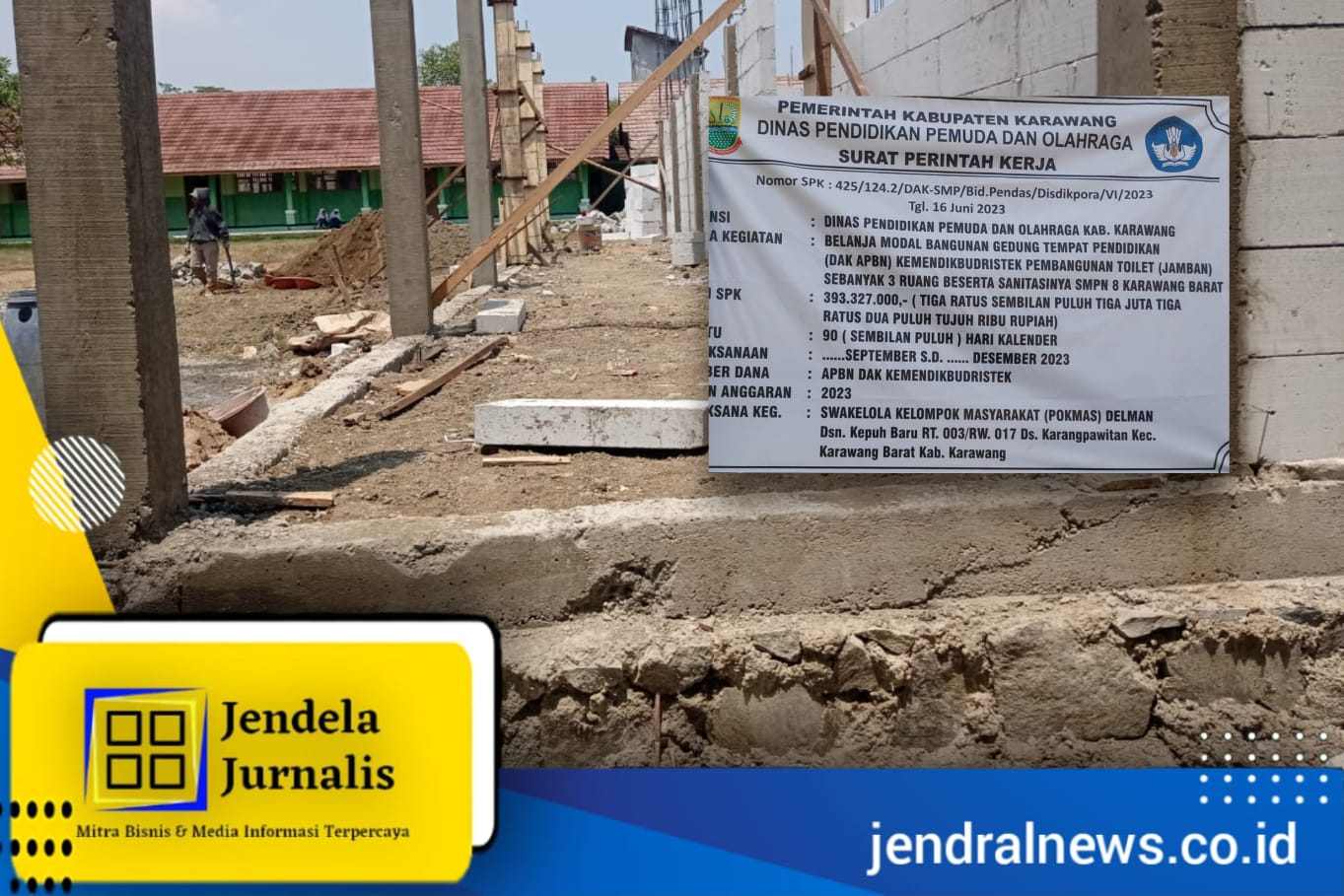 Pemerintah Kabupaten Karawang melalui Dinas Pendidikan, Pemuda dan Olahraga (Disdikpora) tengah merealisasikan pekerjaan pembangunan 3 ruang toilet beserta sanitasinya yang berlokasi di SMP Negeri 8 Karawang Barat selaku penerima manfaat. Selasa (17/10/2023).