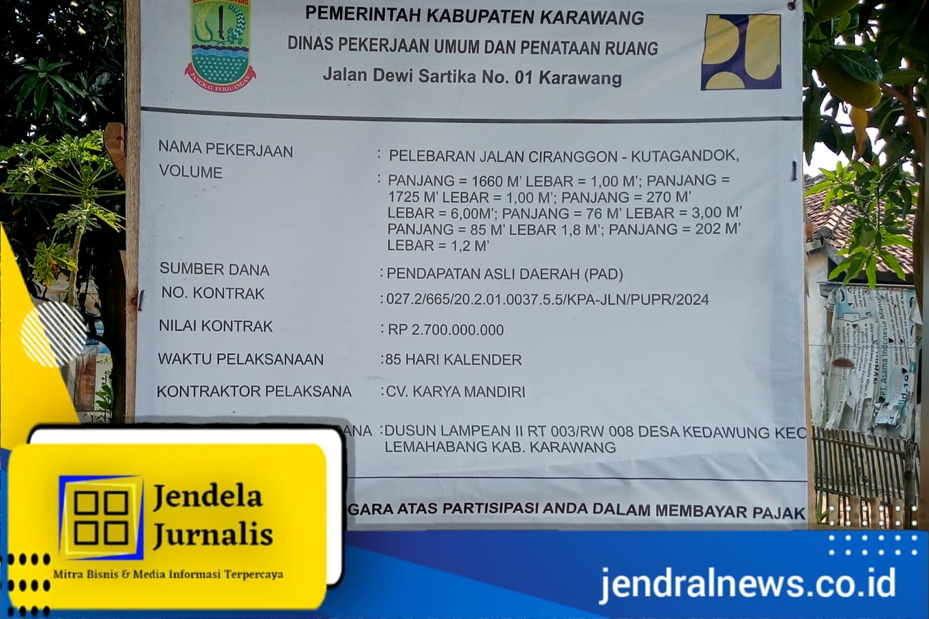 JENDELA JURNALIS Karawang, JABAR – Pelaksana pekerjaan pelebaran jalan Ciranggon – Kutagandok, Kabupaten Karawang dengan anggaran Rp. 2.700.000.000 yang bersumber dari Pendapatan Asli Daerah (PAD) diduga tidak menyediakan direksi keet.