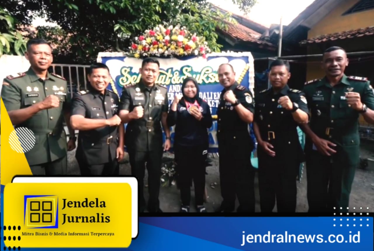 Dandim 0604/Karawang Letkol Kav Makhdum Habiburrahman mengunjungi rumah Atlet peraih medali emas di ajang Sea Games Kamboja Tahun 2023 dari cabang olahraga Cricket yang berlokasi di Desa Belendung, Kecamatan Klari, Kabupaten Karawang, Sabtu (20/05/2023).