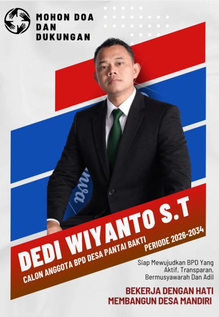 Jendela Jurnalis BEKASI JABAR – Pemilihan anggota Badan Permusyawaratan Desa (BPD) Desa Pantai Bakti periode 2026–2034 mulai menjadi perhatian masyarakat. Salah satu kandidat dari Dusun 1 yang maju dalam pencalonan adalah Dedi Wiyanto, ST, sosok yang dikenal aktif dalam berbagai kegiatan organisasi dan pemberdayaan masyarakat di desa. Sabtu (18/04/2026)
