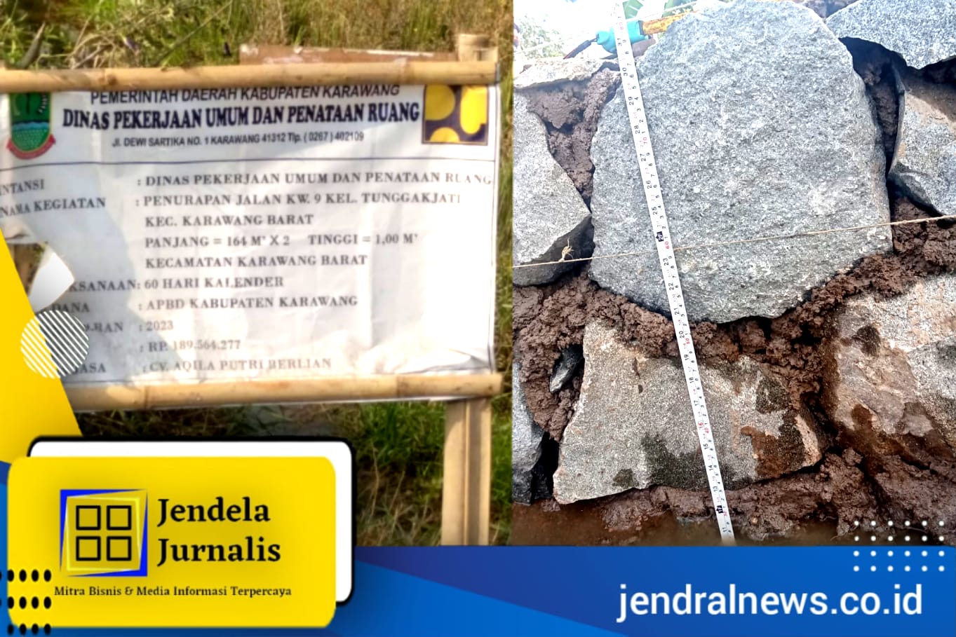 Jendela Jurnalis Karawang, JABAR – Melanjutkan pemberitaan tentang pekerjaan penurapan di Jalan KW 9 Kelurahan Tunggakjati, Kecamatan Karawang Barat yang dikerjakan oleh pihak pelaksana dari CV. Aqila Putri Berlian dengan besaran anggaran Rp. 189.564.277 l,- (seratus delapan puluh sembilan juta lima ratus enam puluh empat ribu dua ratus tujuh puluh tujuh rupiah) melalui serapan APBD Kabupaten Karawang tahun anggaran 2023 yang diduga bahwa dalam pelaksanaan pekerjaannya telah melakukan kecurangan dengan mengurangi ukuran volume ketinggian.