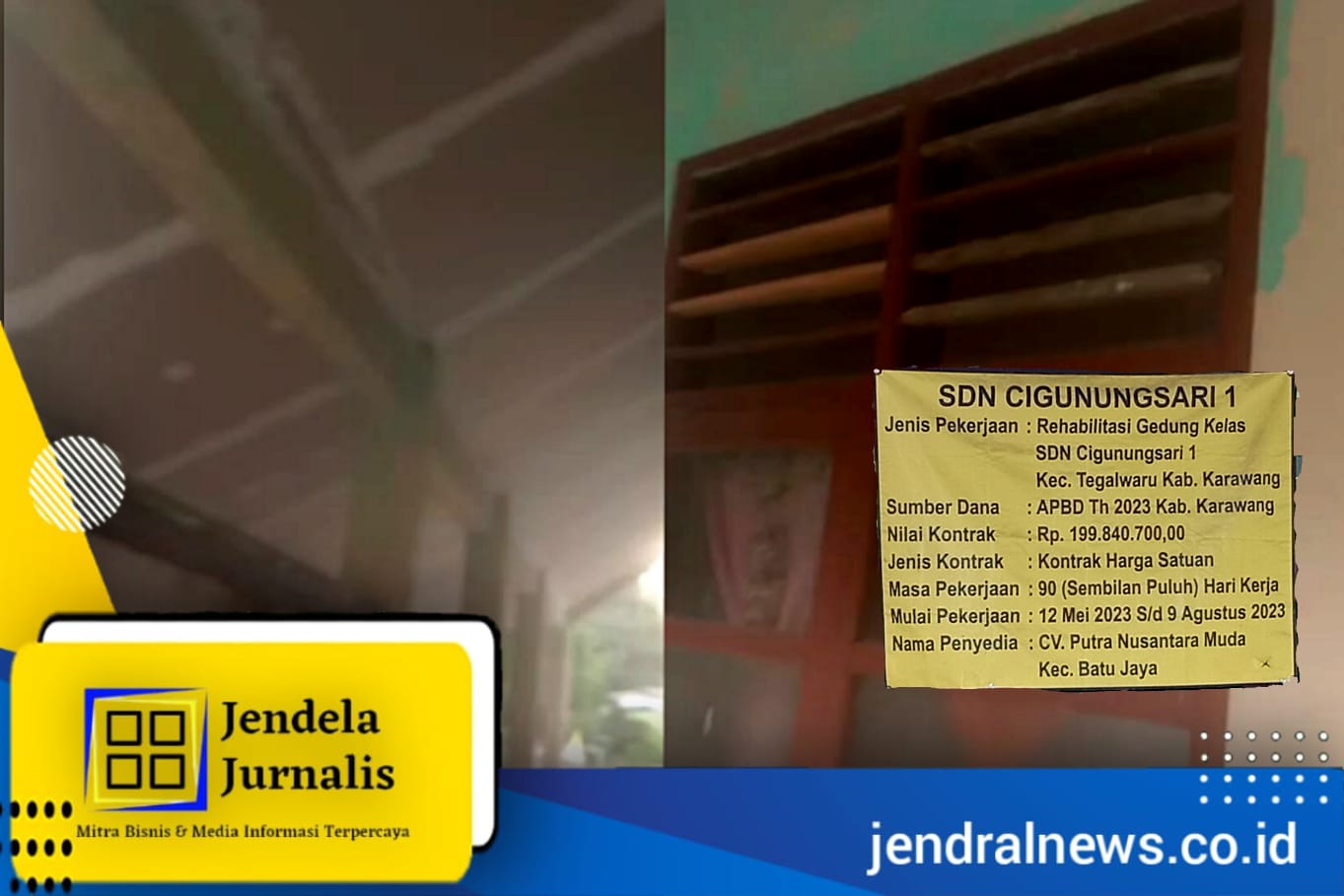 Hal itu mencuat, ketika awak media melihat langsung kondisi bangunan SDN Cigunungsari I usai dilakukan pekerjaan rehabilitasi oleh CV Putra Nusantara Muda, yang beralamat di Kecamatan Batujaya Kabupaten Karawang, Jawa Barat, selaku pelaksana pekerjaan sebagaimana yang tertera di papan proyek dengan masa pekerjaan 90 (sembilan puluh) hari kerja terhitung sejak 12 Mei 2023 hingga 9 Agustus 2023 lalu.