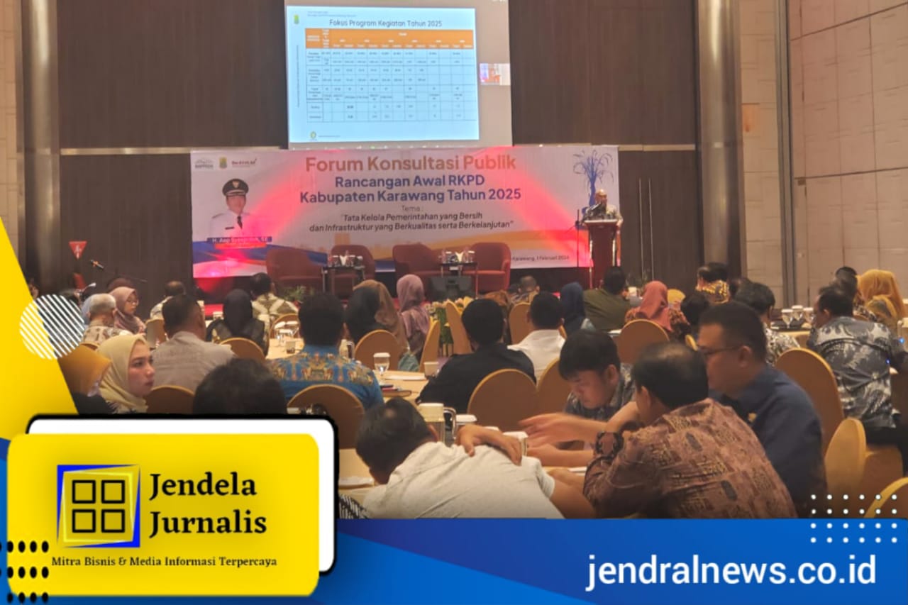 Jendela Jurnalis Karawang, JABAR – Pemkab Karawang melalui OPD Badan Perencanaan Daerah (Bappeda) menggelar Forum Konsultasi Publik Penyusunan Rencana Kerja Perangkat Daerah (RKPD) Tahun 2025 di Hotel Mercure, Kamis (1/2/2024).