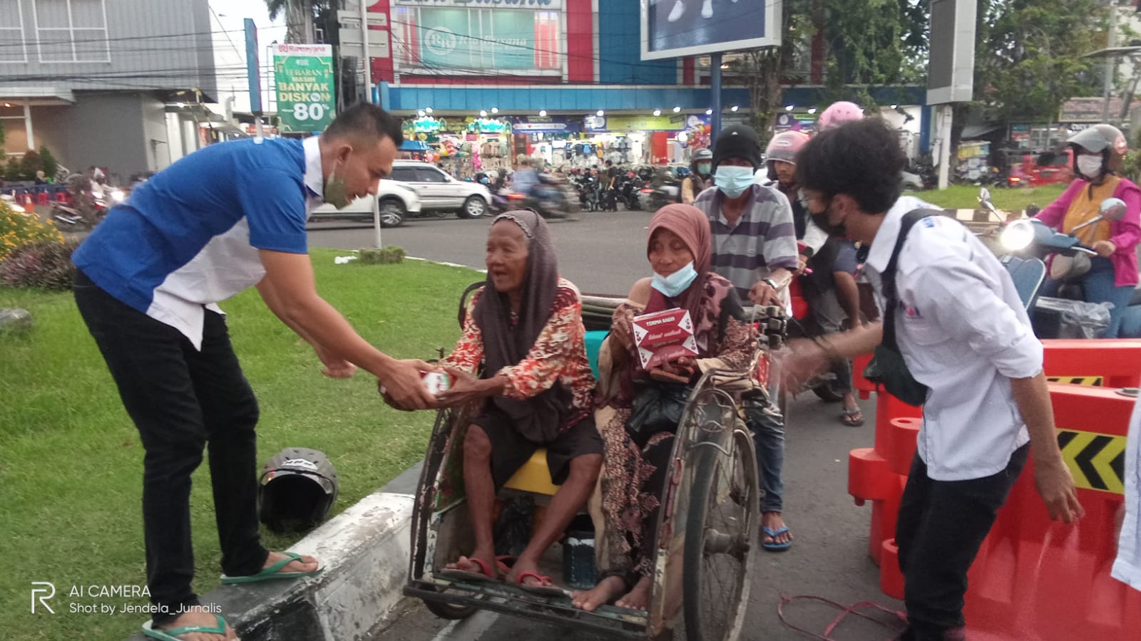 Ada dua titik pembagian 100 nasi kotak, yakni bunderan Mal Ramayana atau Ciplaz dan perempatan lampu merah Pasar Johar.