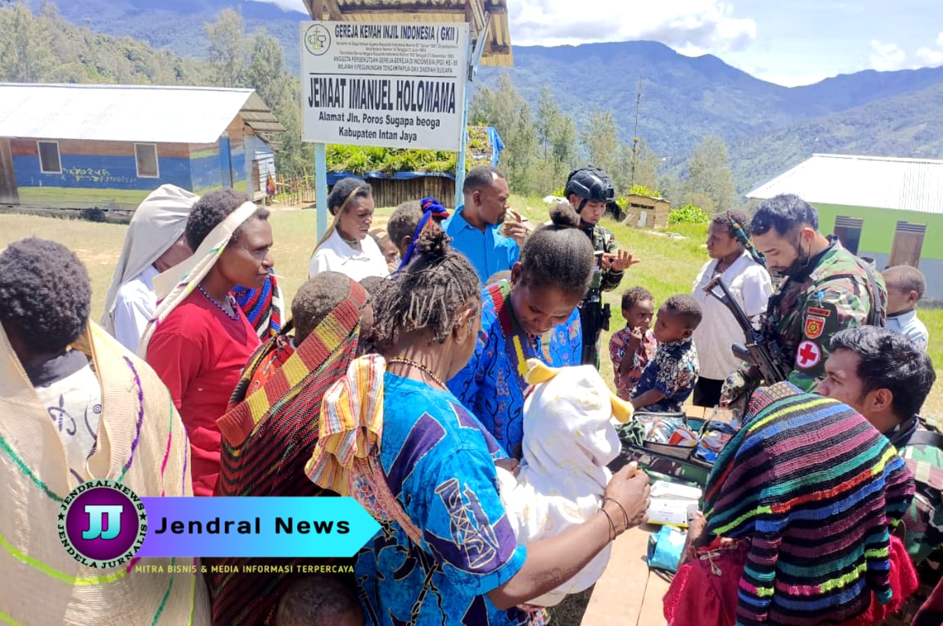 Sekitar 50 jema’at Gereja Imanuel Holomama, dipimpin oleh Pendeta Paulus Maiseni, bersama dengan 30 Personel TNI-Polri berdo’a kepada Tuhan, bersyukur dan berterima kasih serta memohon agar selalu diberikan berkat, perlindungan, kesehatan dan keselamatan. Tidak lupa, para jema’at mendo’akan, agar terwujudnya Intan Jaya yang aman dan damai, sehingga tercipta suasana PAPEDA (Papua Penuh Damai).