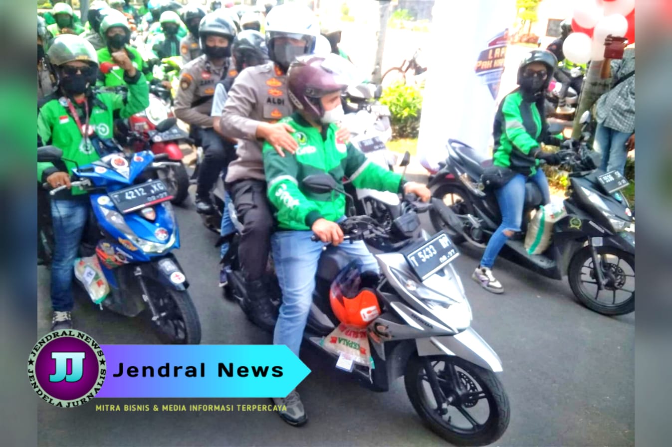 Gabungan ojeg online se Kabupaten Karawang menggelar deklarasi bersama Kapolres Karawang AKBP Aldi Subartono, dalam rangka menjaga kondusifitas dan bersama sama menjaga kamseltibcarlantas dan membantu masyarakat dalam giat bakti sosial, bertempat di halaman Polres Karawang, Rabu (7/9/2022)