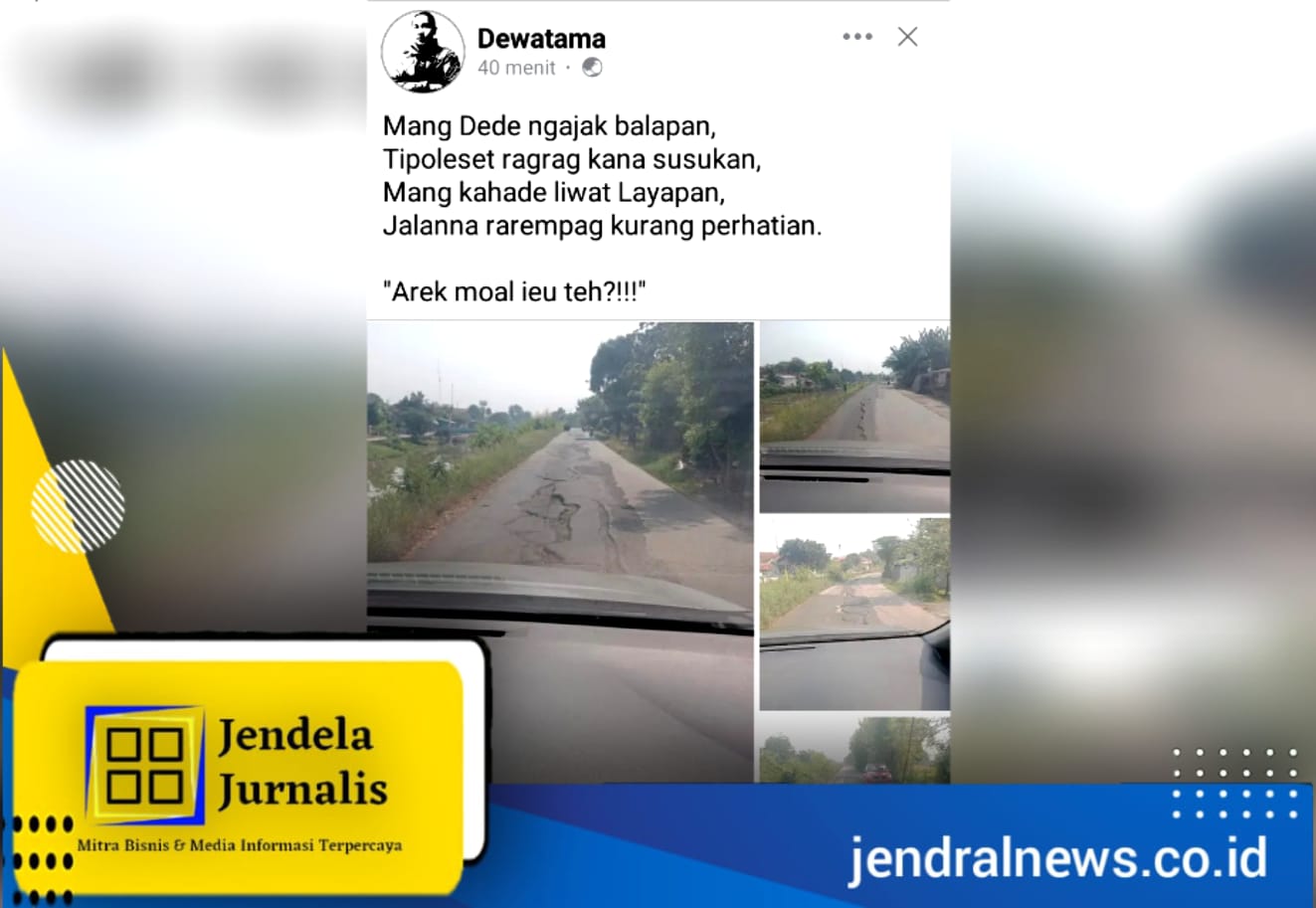 Diduga akibat miris melihat kondisi jalan di jalur “Layapan” yang menghubungkan Kecamatan Telagasari dan Kecamatan Tempuran, warganet berikan sindiran melalui pantun dalam postingan facebook. Selasa (16/05/2023).