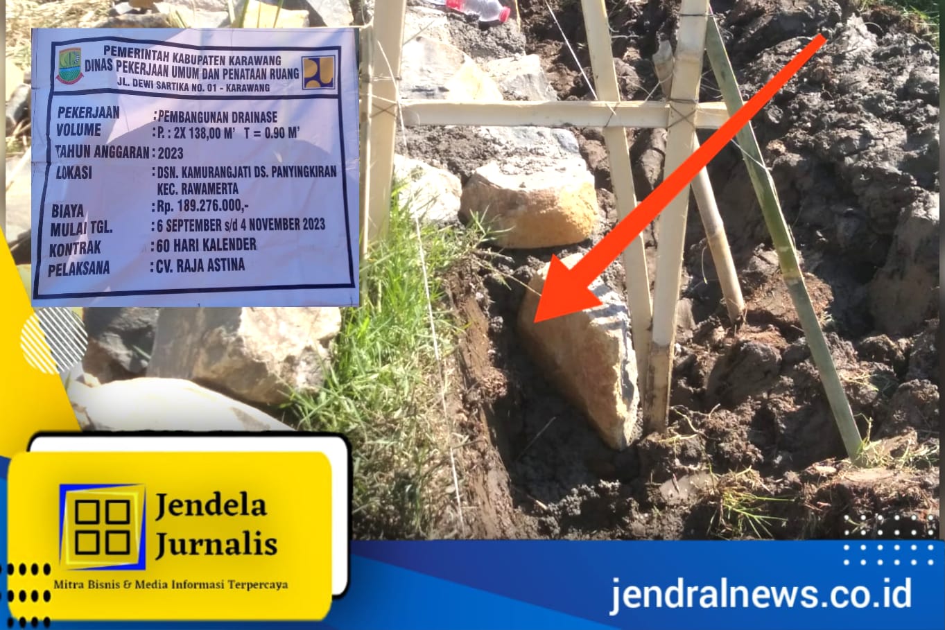 Pekerjaan Pembangunan Drainase Dusun Kamurangjati, Desa Panyingkiran, Kecamatan Rawamerta, Kabupaten Karawang yang dikerjakan oleh CV. Raja Astina diduga dikerjakan asal jadi dan tidak sesuai spesifikasi yang tertuang dalam Rencana Anggaran Biaya (RAB).