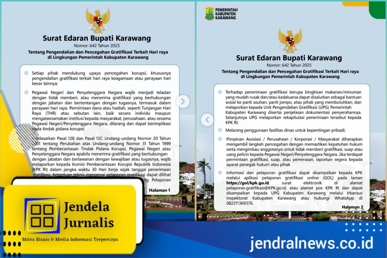 Untuk diketahui, surat edaran tersebut telah disebarluaskan kepada seluruh stakeholder di lingkungan Pemkab Karawang, termasuk melalui akun media sosial resmi Pemkab Karawang. Dengan adanya aturan ini, diharapkan seluruh ASN dan penyelenggara negara di Karawang dapat patuh serta menciptakan pemerintahan yang bersih dan bebas korupsi. (Red)*