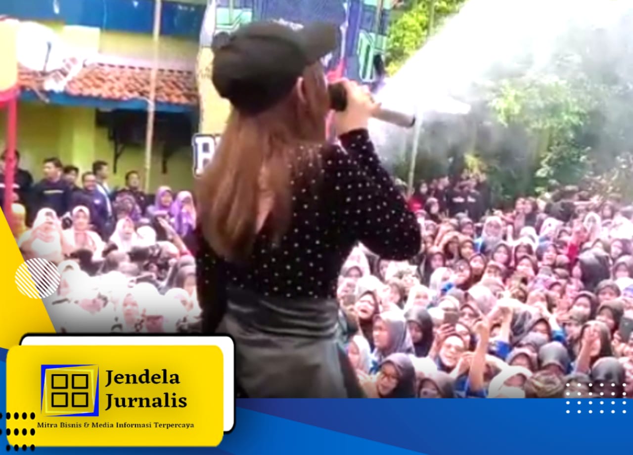 Jihan Audylia Arinde Silva, atau yang popoler di panggil Jihan Audy, menggoyang di tengah-tengah ribuan siswa dan guru serta tamu undangan lainya, dalam rangka Hari Ulang Tahun Sekolah Menengah Kejuruan Negeri (SMKN) 1 Pemalang. (10/2/2023).