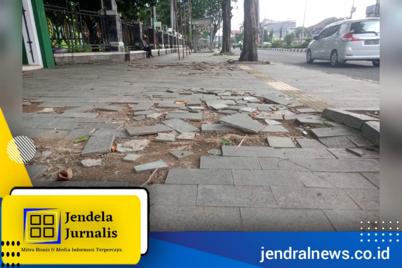 Omongan Rambudi ternyata ‘zonk’ alias bualan kosong, lantaran hingga kini kerusakan pedestrian tak kunjung diperbaiki. (red).