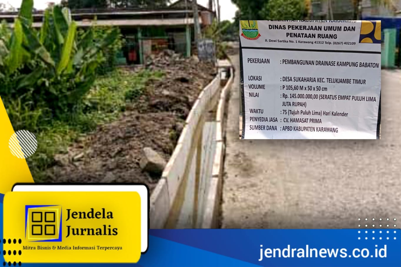 Diketahui, proyek pembangunan U-ditch tersebut bersumber dari Perubahan Anggaran Pendapatan dan Belanja Daerah (P.APBD) Kabupaten Karawang Tahun 2023, digarap CV. HAMASAT PRIMA, dengan ukuran Volume Panjang 105,60 M’ Ukuran 50X50 CM (Uditch) Kecamatan Telukjambe Timur, melalui waktu pelaksanaan selama 60 hari kalender, dengan serapan anggaran sebesar Rp. 145.000.000,- (seratus empat puluh lima juta rupiah).