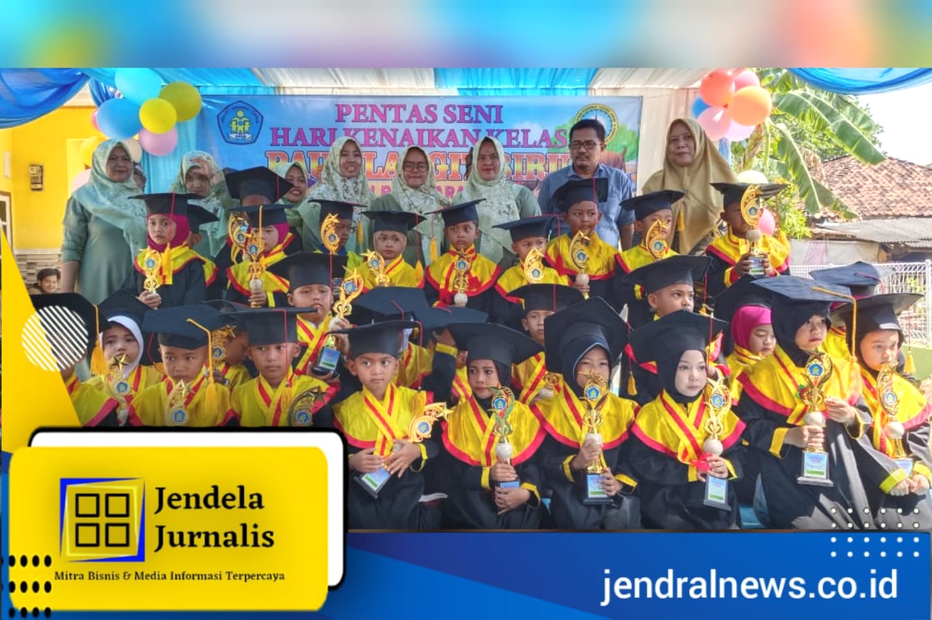 Dalam rangka kenaikan kelas di Pendidikan Anak Usia Dini (PAUD) Langit Biru yang berlokasi di Desa Parakan, Kecamatan Tirtamulya, Kabupaten Karawang diselenggarakan dengan menggelar kegiatan pentas seni. Minggu (11/6/2023).