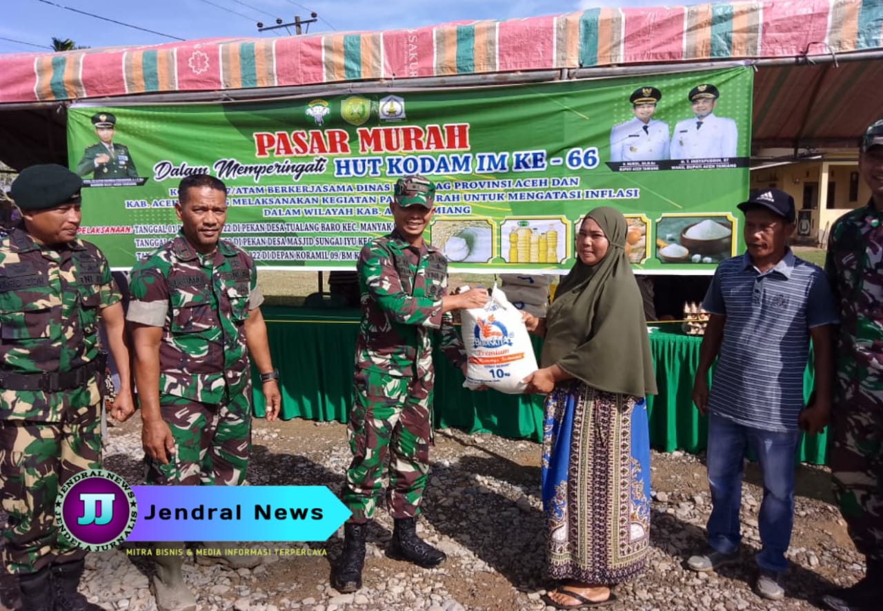 Dalam rangka memperingati HUT Kodam IM (Iskandar Muda) yang ke-66 tahun 2022, Kodim 0117/Atam (Aceh Tamiang) bekerjasama dengan Disperindagkop (Dinas Perindustrian, Perdagangan dan Koperasi) Prov. Aceh, laksanakan Giat Baksos dengan menggelar ‘Pasar Murah’, Minggu (4/12/22), bertempat di halaman Koramil 09/Bdh, Ds. Matang Seping, Kec. Banda Mulia, Atam. Giat tersebut disambut dengan antusias, terlihat kurang lebih dua ratusan masyarakat yang hadir dalam bazar tersebut.
