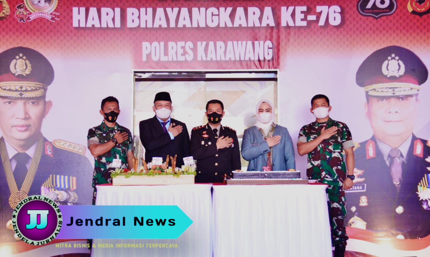 Polres Karawang menggelar upacara memperingati HUT Ke-76 Bhayangkara di halaman Mapolres Karawang, Selasa (5/7/2022) sekira pukul 08.00 hingga pukul 12.00 WIB.