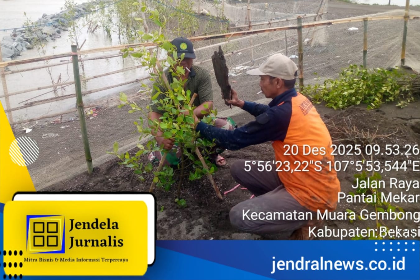 Jendela Jurnalis Bekasi, JABAR – RTKB (Relawan Tangguh Kampung Bungin) kembali menunjukkan komitmennya dalam menjaga lingkungan pesisir dengan melaksanakan kegiatan penanaman pohon di wilayah Muara Bungin, Kecamatan Muara Gembong, Kabupaten Bekasi, Jawa Barat, Sabtu (20/12/2025).