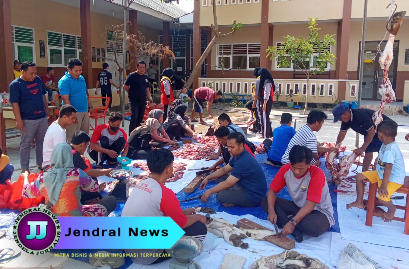 “Alhamdulilah, moment Idul Adha tahun ini dari sekolah bisa berkurban 1 ekor sapi, setelah pemotongan selesai, nanti yang membagikannya para siswa, aparatur dan tokoh masyarakat disini, agar siswa bisa mendapatkan ilmu sosial yang bermanfaat dan bisa berbaur bersama bermasyarakat.” Terangnya.
