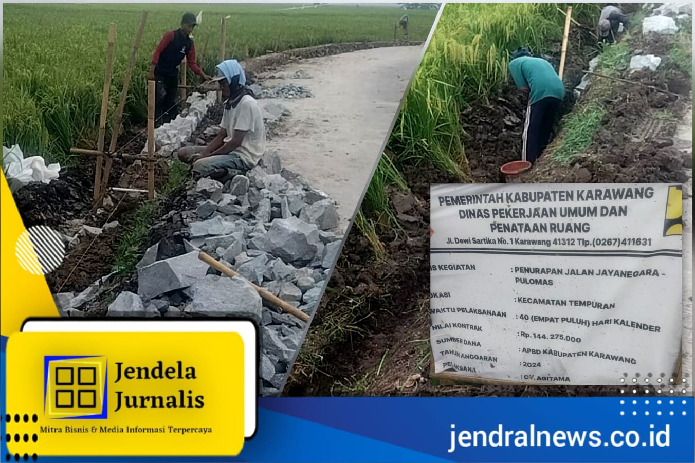 Dalam pelaksanaannya, pekerjaan penurapan jalan tersebut dikerjakan oleh CV. Agitama dengan nominal anggaran sebesar Rp. 144.275.000,00,- (seratus empat puluh empat juta dua ratus tujuh puluh lima ribu rupiah) yang bersumber dari APBD Kabupaten Karawang Tahun Anggaran 2024.