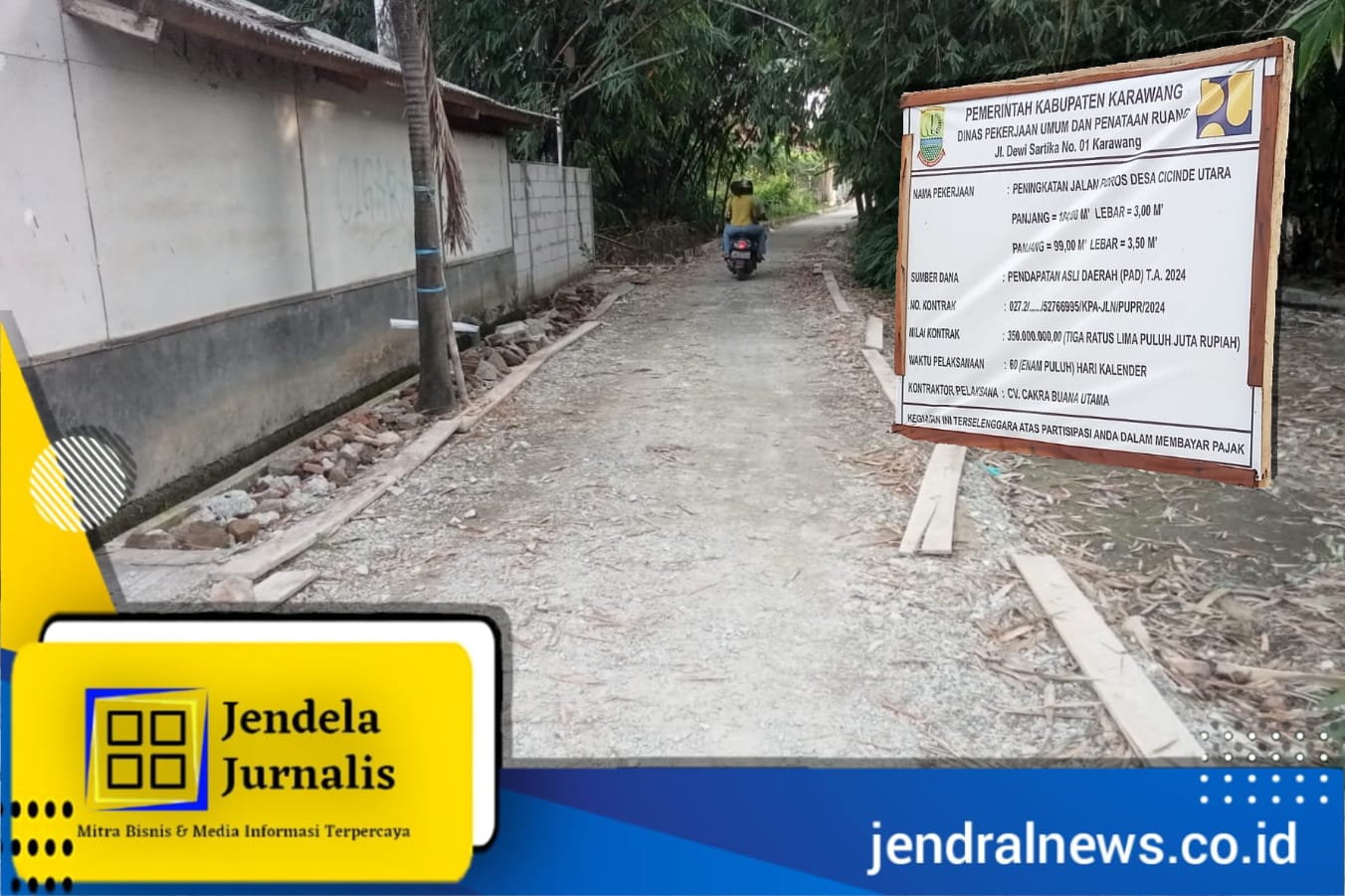 Jendela Jurnalis Karawang, JABAR – Proyek peningkatan jalan poros Desa di Desa Cicinde Utara Kecamatan Banyusari Kabupaten Karawang tengah menuai sorotan publik, dimana pada sebelumnya telah ada pemberitaan di salah satu media online beberapa waktu lalu. Namun, ketika tim investigasi Jendela Jurnalis melakukan kroscek ke lapangan, keadaan proyek tersebut masih belum ada perubahan. Minggu (8/12/24)?
