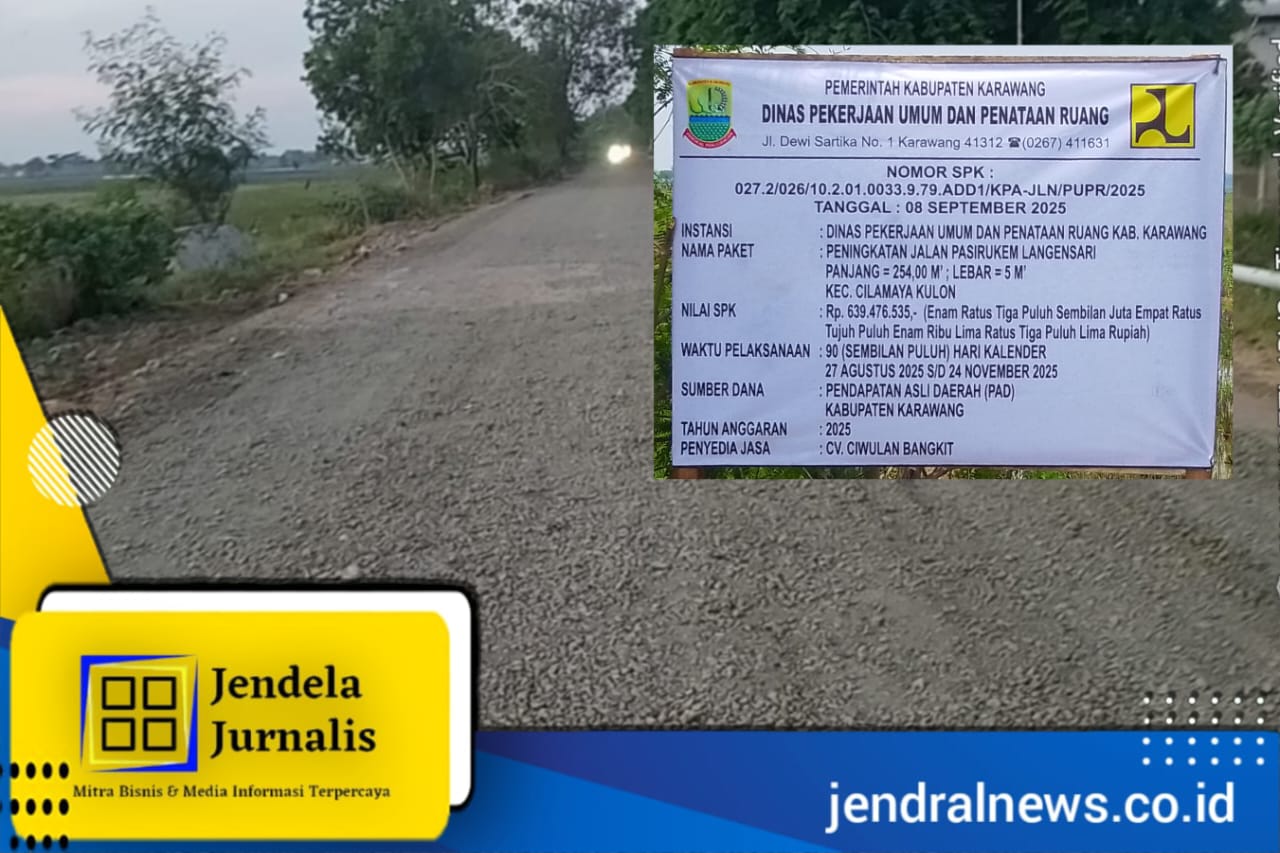 Sehari kemudian, tiba-tiba papan informasi pekerjaan atau papan proyek terlihat telah terpasang. Diketahui, pekerjaan tersebut dikerjakan oleh CV. CIWULAN BANGKIT melalui Nomor SPK 027.2.026/10.2.01.0033.9.79.ADD1/KPA-JLN/PUPR/2025 Tanggal 08 September 2025 dengan nilai kontrak sebesar Rp.639.476.535,- (enam ratus tiga puluh sembilan juta empat ratus tujuh puluh enam ribu lima ratus tiga puluh lima rupiah) yang bersumber dari Pendapatan Asli Daerah (PAD) kabupaten Karawang tahun 2025.